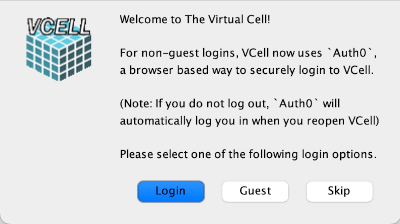 - Skip - Dismisses the dialog, placing VCell in a "offline" state. Should the user wish to login